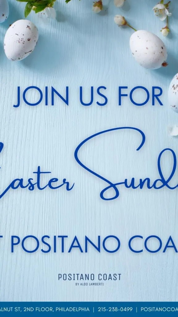 Join us at Positano Coast for a lovely Easter Sunday! Enjoy a memorable Easter Sunday with our special a la carte Brunch and Dinner menus. For all reservations, call 215-238-0499.