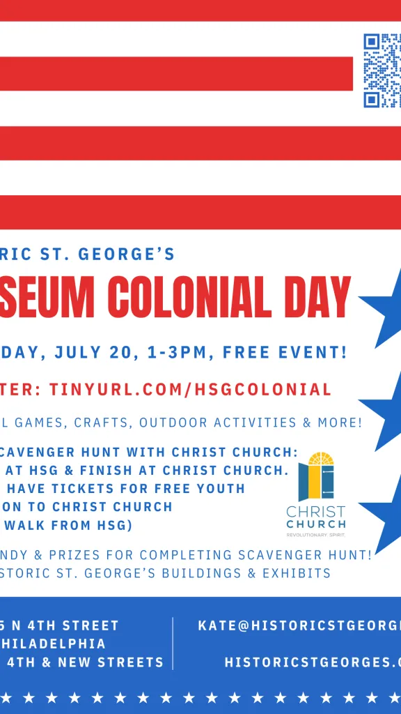 Joint scavenger hunt with Christ Church: Do half at HSG & Finish at Christ Church. We will have tickets for FREE Youth Admission to Christ Church (.5 mile walk from HSG)