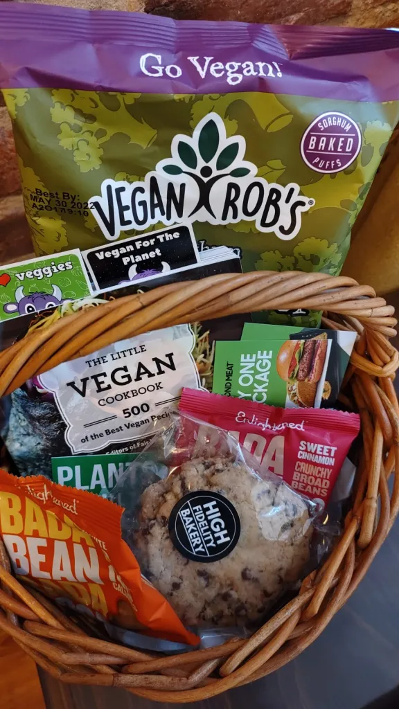 Throughout the month of December, shoppers looking for gifts for vegans will find great deals on shirts, books, postcards and food items. Holiday baskets and gift bags are available with per-item discounts for those filling bags. Also the AVC will be giving away a book of historical note (large selection) with every purchase.