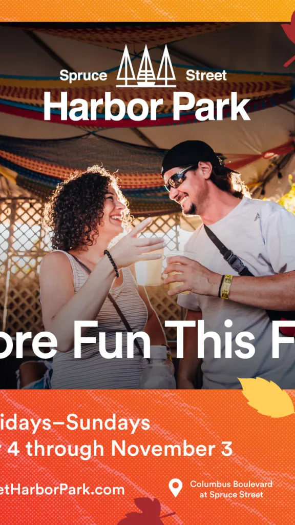 We are excited to announce that Spruce Street Harbor Park will now be open Fridays through Sundays from October 4 to November 3. Get ready for a season full of fall brews, thrilling sports watch parties, amazing programming, and tons of seasonal fun. Don’t miss out on the fall excitement! Visit sprucestreetharborpark.com to learn more.